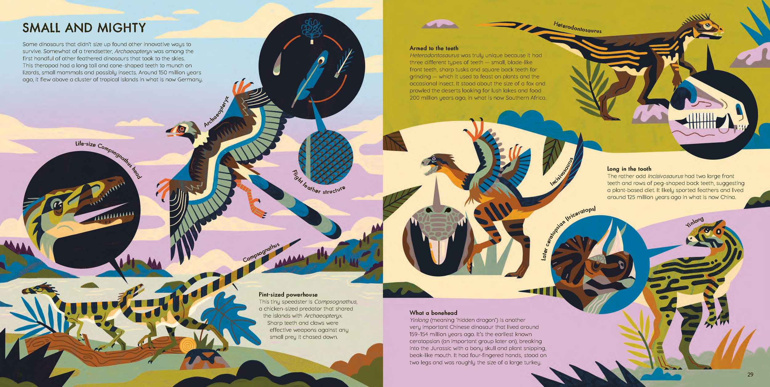 Spanning an incredible 180 million years, compare the biggest, smallest, fastest and fiercest creatures that took to our lands, seas and skies. From the fearsome Tyrannosaurus to the tiny speedster Compsognathus, children will learn all about when different dinosaurs lived, what they looked like, what they ate and how they were built, or evolved, to survive.