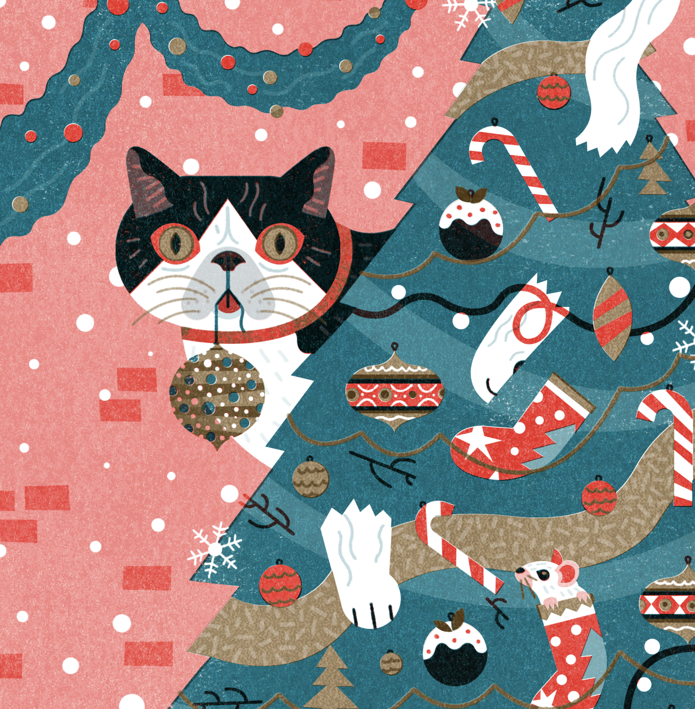 Risograph greetings cards printed on 300gsm Fedrigoni paper. A three colour process: red, teal and metallic gold.